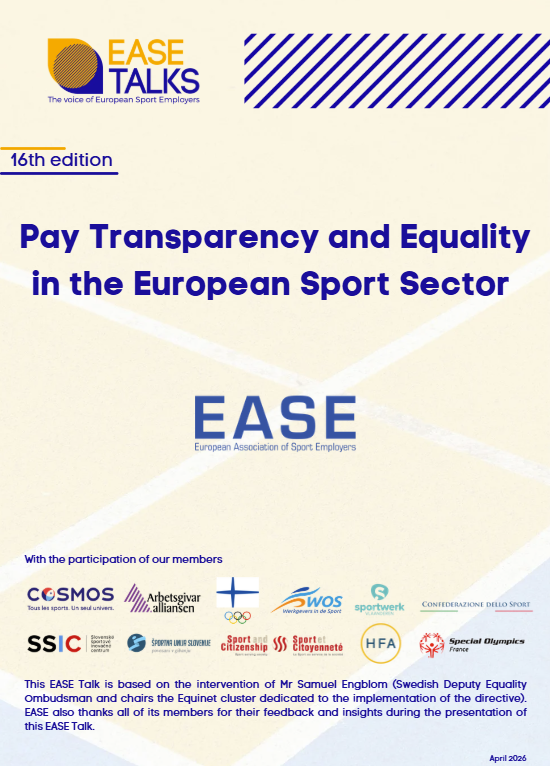 Raphaël Battesti2026-04-22T17:47:20+02:00EASE is pleased to share the main takeaways from the 16th edition of EASE Talks, dedicated to Pay Transparency and Equality in the European Sport Sector. This edition was based on the intervention of Mr Samuel Engblom, Swedish Deputy Equality Ombudsman and Chair of the Equinet cluster dedicated to the implementation of the directive, and was further enriched by the [...]